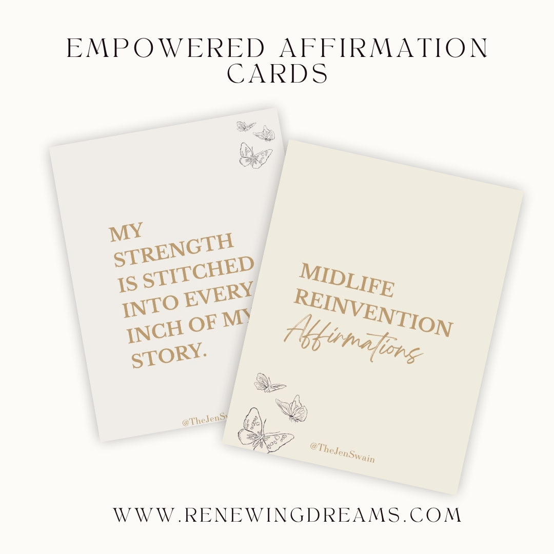 Printable mini-cards for daily confidence, clarity, and courage in midlife.
